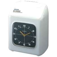 ●時刻記録タイムレコーダー●30人以下の事業所に推奨●大型アナログ時計●無償保証は3年間●サマータイム対応●6欄印字●2色印字(黒/赤)●タイムカード自動引込み・自動印字●打ち間違い無しの表裏判定機能付き●徹夜機能付き:日付切換時刻を過ぎて退勤した場合でも出勤と同じ段に印字●RoHS指令対応製品
