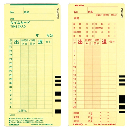 | 商品名 | タイムカード Time P@CK(4欄印字)カードB |