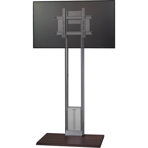 【平置き設置タイプ】55インチクラス大型ディスプレイ対応の新壁寄せスタンド、デザインを一新しフルリニューアル。アンカー施工不要の高級感溢れる平置き木製ベース。ハイタイプを活かしたディスプレイ設置も可能!