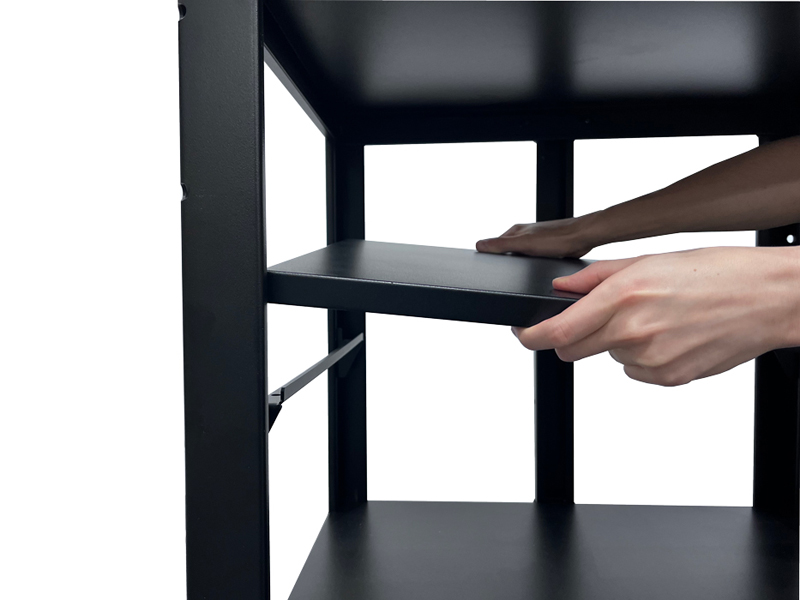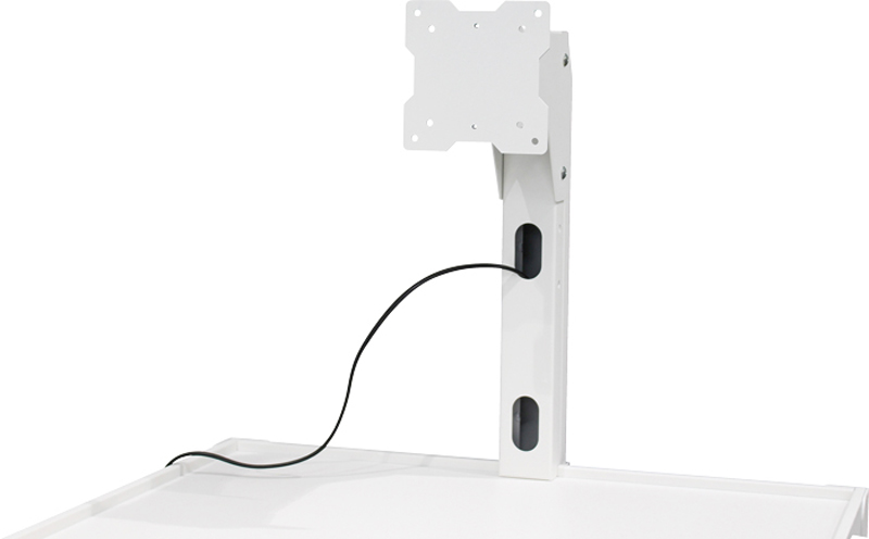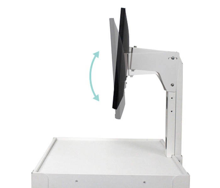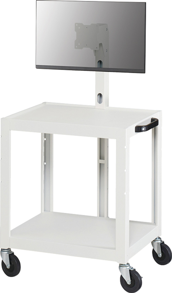 ディスプレイ設置可能で、多用途にお使い頂けるマルチカート。ディスプレイ高さ調整、上下傾斜、左右首振り調整可能。滑らかなサテン塗装のホワイトカラー。