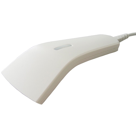 小型・軽量・薄型のバーコードリーダーです。バーコードにくっつけて読む「タッチ読み」、バーコードから離して読む「離し読み」のどちらもできます。