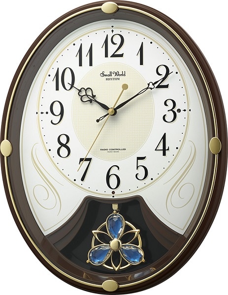 電波時計 掛け時計 6曲入り クリスタル飾り振り子付き 36.5x28.5cm スモールワールドリリィN ブラウン