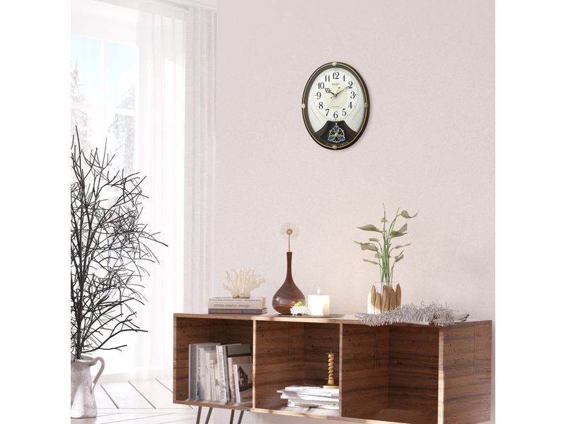 | 商品名 | 電波時計 掛け時計 6曲入り クリスタル飾り振り子付き 36.5x28.5cm スモールワールドリリィN ブラウン |