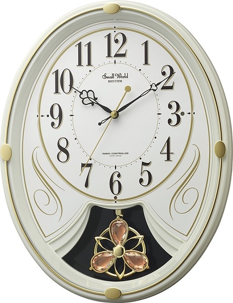 電波時計 掛け時計 6曲入り クリスタル飾り振り子付き 36.5x28.5cm スモールワールドリリィN アイボリー