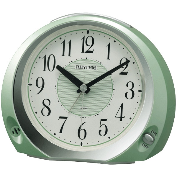 ●ムーブメント:クオーツ。●電子音アラーム。●連続秒針。●使用電源:アルカリ単3形×2本(別売)。●配色:緑メタリック。●材質:プラスチック枠(PS)。●サイズ:123×145×67mm。●重量:240g。●名入れ:25×55mm(グレー)。●個包装:135×158×75mm(300g)。●ライト付き。●止めてもまた鳴る「スヌーズ機能」。
