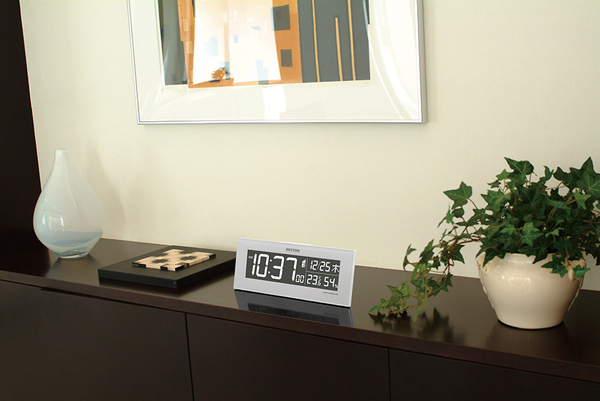●ムーブメント:電波時計。●電子音アラーム。●365色LED発光。●使用電源:AC電源、CR2032×1個。●配色:白。●材質:プラスチック枠(PS)。●サイズ:92×240×20mm。●重量:330g(ACアダプター含まず)。●名入れ:25×40mm(黒)。●個包装:102×250×80mm(560g)。●温度表示(-9.9~50℃)。●湿度表示(20~95%)。●カレンダー(2099年12月31日までプログラム)。●止めてもまた鳴る「スヌーズ機能」。●12/24時、表示切替可能。●置き掛け兼用。●2つの時刻をセットできる「ダブルアラーム機能」。