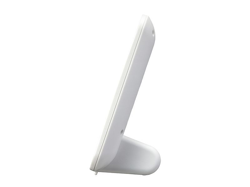 ●時計付(電波時計)。●アラーム機能無し。●高精度温度表示(-9.9~50℃)(誤差±1℃)。●高精度湿度表示(20~95%)(誤差±3%RH)。●環境目安表示(「熱中症」「インフルエンザ」「快適」表示タイプ)。●24~25時間以内の最低/最高値(温度・湿度)表示機能付。●カレンダー表示(2099年12月31日までプログラム)。●使用電源:単3形×2本(別売)。●配色:白。●材質:プラスチック枠。●サイズ:132×186×53mm。●重量:290g。●名入れ:18×70mm(白)(前面下部)。●個包装:170×200×70mm(380g)。