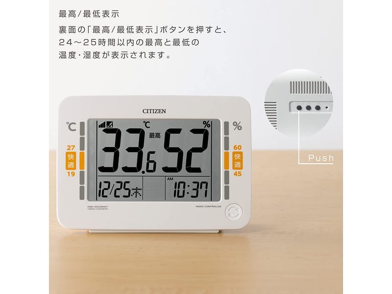 シチズン 高精度 温度・湿度計 快適目安表示 電波時計機能付き