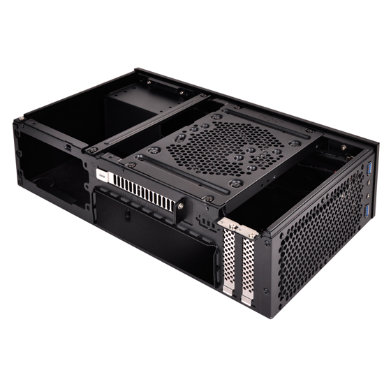 【Milo シリーズ】鏡面仕上げのフロントパネルを持つ縦横置き対応Mini-ITX HTPCケース◆フロントUSB3.0◆ロープロファイル拡張スロット×2◆天板裏に多用途ブラケット(ODD/3.5インチ/2.5インチ/12cmファン)