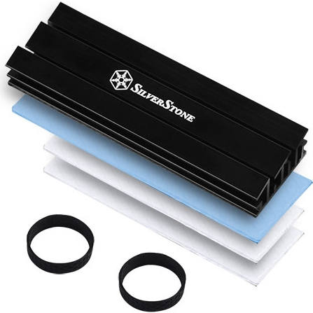 放熱パッド付M.2 SSD用ヒートシンク◆アルミニウム合金ヒートシンクがM.2 SSDの放熱性を高めます。◆M.2 SSDの両面に使用可能な2種類の放熱パッドを付属◆シリコンバンドによりM.2 SSDに負荷をかけず容易に装着可能