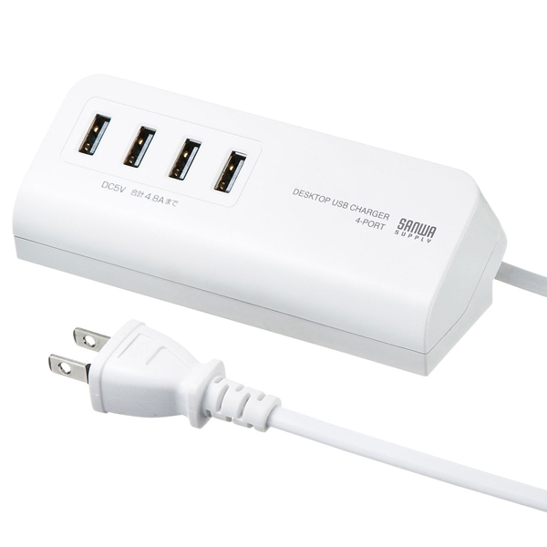 マグネット付USB充電器(USB4ポート・ホワイト)