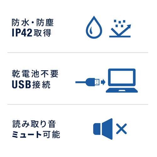 | 読取可能コード(一次元) | JAN、EAN-8、EAN-13、UPC-A、UPC-E、Code 39、Code 93、Code 128、EAN128、Codaber、Industoal 2 of 5、Interleave 2 of 5、Matrix 2 of 5、MSI |