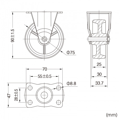 | 商品名 | 汎用キャスター 75mm径 2個セット(固定)ナイロン製 |