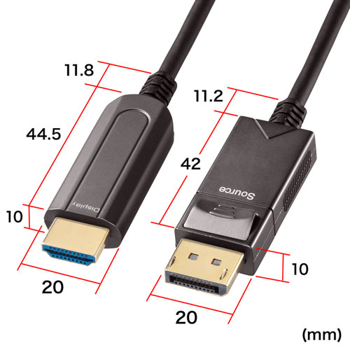 商品名 DisplayPort-HDMI変換光ファイバーケーブル(10m)