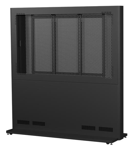 ケーシング型デジタルサイネージスタンド。65インチ用横設置タイプ。ディスプレイとスタンドを一体化。移動に便利なキャスター付き。収納スペースあり。