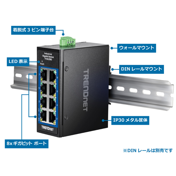 | 商品名 | 8ポート 産業用ギガビットDINレールミニスイッチ |