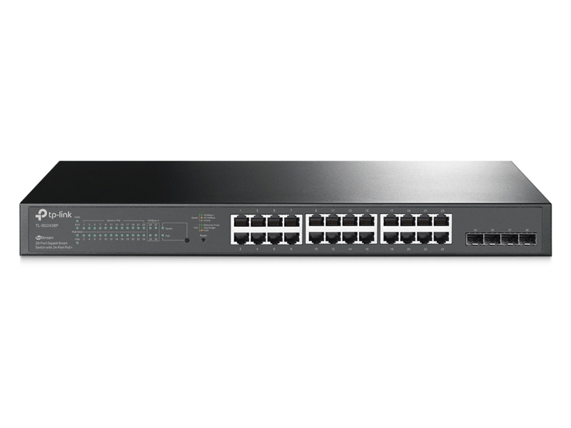JetStream 24-Port Gigabit Smart PoE+ Switch with 4 SFP Slots