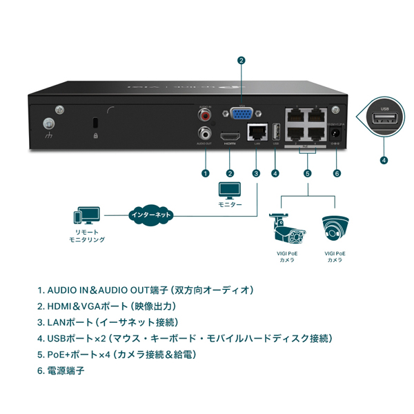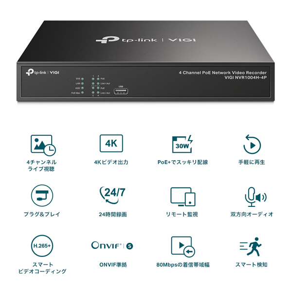 | 商品名 | VIGI 4チャンネル PoE+ ネットワークビデオレコーダー |