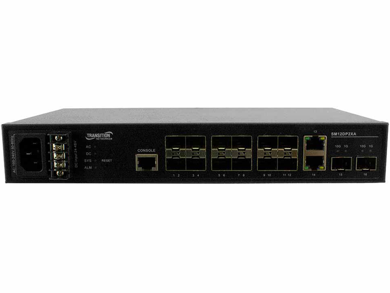 (12) 100/1000Base-X SFPスロット + (2) 1G/10GBase-X SFP+スロット + (2) 10/100/1000Base-T