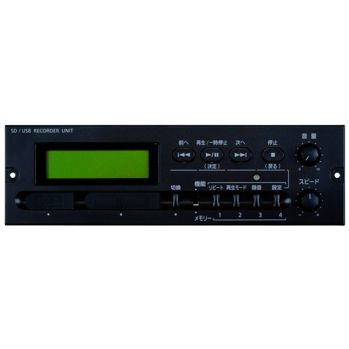 ●卓上形アンプBXシリーズに組込み可能なSDレコーダーユニット●ランダム再生、1曲リピート、リレー再生、全曲リピート、全曲再生の再生モードが選択可能●プログラム再生が可能●前後1曲の頭出しができます●MP3方式での録音・再生が可能●1曲消去・全曲消去・SDカードのフォーマットができます●再生時は±15段階のスピードコントロールが可能●LCD表示により各種表示(経過時間・設定モード・ファイル名・録音レベル・メモリー井用等)をわかりやすく表示