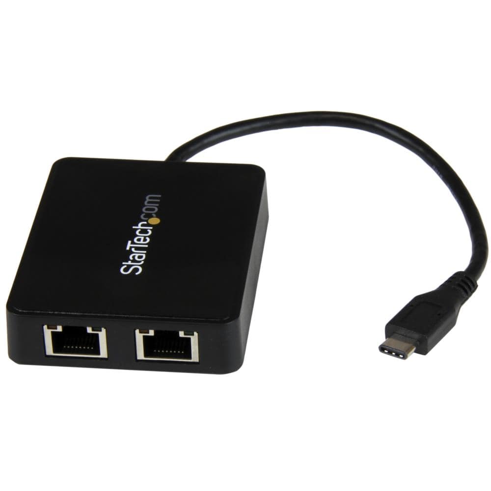 USB-C接続2ポートギガビット有線LAN変換アダプタ USB 3.0 Aポート x1付き USB Type-C(オス) - 2x RJ45(メス) 保証期間: 2年間