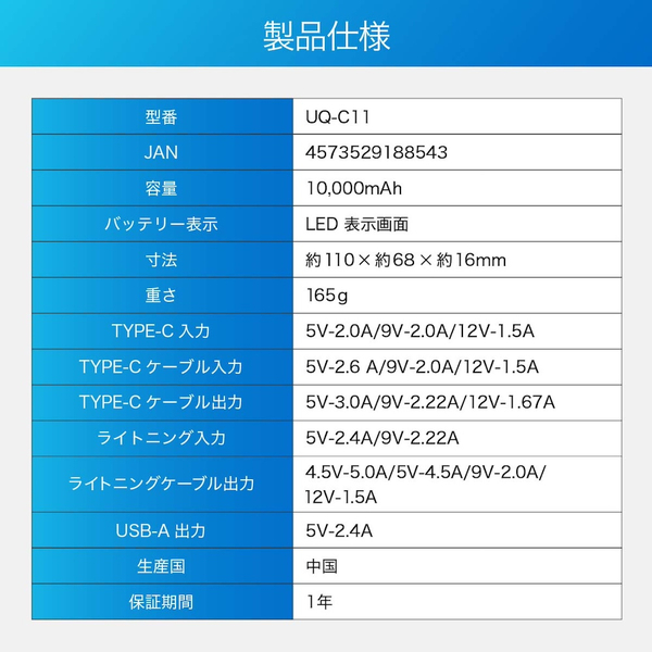 | 商品型番 | UQ-C11-DS |