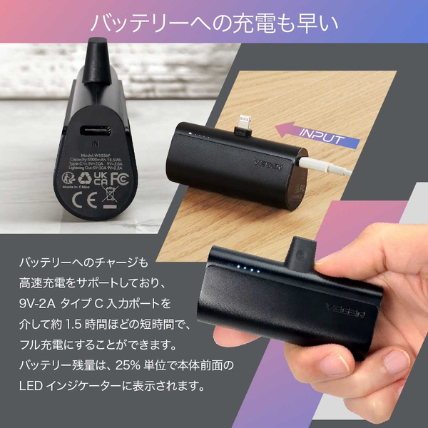 | 商品名 | VEGER Lightning コードレス ミニ パワーバンク 5000mAh 18.5W |