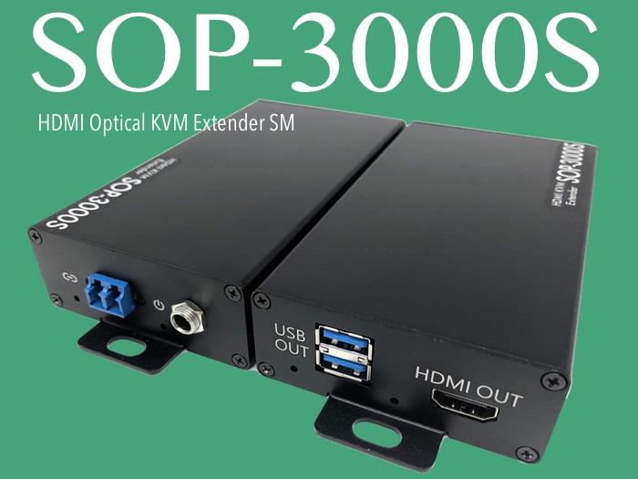 ●SOPシリーズはHDMIモニタ、USBマウス/キーボードを光ケーブルで長距離延長する機器です。延長先モニタでは画質や色ずれなどの調整が不要で、最大延長でもフルHD(1920×1080)~4K30Hz(3840×2160)の高解像度を維持します。 ●光ケーブルを使用するので、モニタ表示に影響するノイズやキーボードの誤動作など、外部環境に心配がある現場でも安心して設置できます。 ●延長距離に合わせて2種類のタイプをご用意しました。 最大700mまで延長可能なSOP-700Mと、3Kmまで延長可能なSOP-3000Sです。それぞれ使用する光ケーブルの種類が違います。SOP-700Mはマルチモード光ケーブルを使用し、SOP-3000Sはシングルモード光ケーブルを使用します。 ●SOPシリーズは、2つのモードの光ケーブルにそれぞれ対応した2機種を持っています。また、マルチモードはグレードによって大別され、OM1~OM4に区別されていて、数字が大きくなるほどスペックが向上します。SOPシリーズで使用するマルチモードのグレードは、OM3とOM4です。