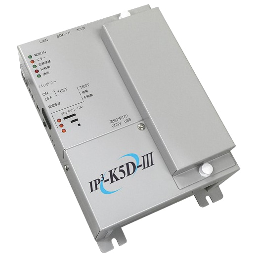「IP3-K5D-Ⅲ」は、『IP3-K5D』『IP3-K5D-Ⅱ』のLTE対応製品です。 接点入力8点、接点出力2点を持っており、UM04-KO専用アダプタセットを接続し、接点監視・制御を可能にする装置です。