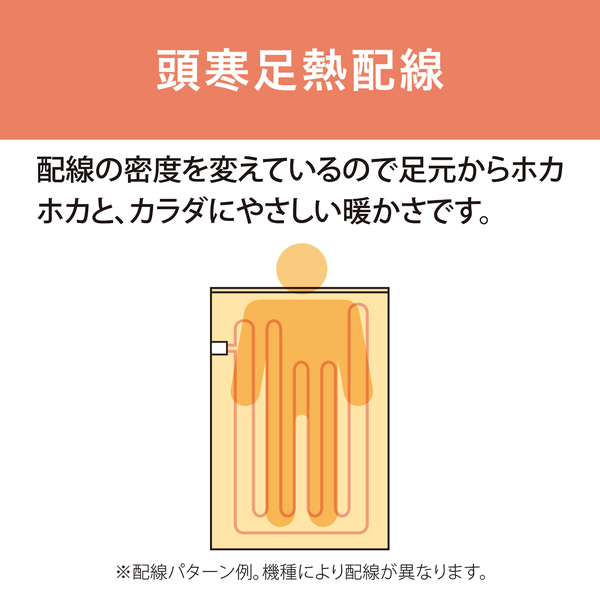 130×80cmの電気敷毛布。繊維に抗菌防臭加工を施し、細菌の繁殖やにおいを抑えます。冷えやすい足元をしっかり暖める頭寒足熱配線。布団に挟んで「強」設定で約3時間通電することで、高温に保ってダニ退治ができます。毛布部分は洗濯機で洗えて清潔に。