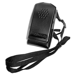 皮革風の装丁。操作性を確保し衝撃や汚れから本体を守るケース。ショルダーストラップを付属。ベルト通し付き。