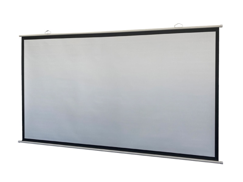 ●100インチ壁掛けスクリーン●壁掛け吊るしタイプ●巻き取り収納式●アスペクト比16:9●RoHS2指令対応●様々な品質試験をクリア:JISクロスカット試験/鉛筆硬度試験/塩水噴霧試験/摩擦試験