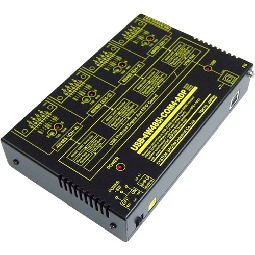 USB(VCOM)⇔4ポート4線式RS485変換器(ACアダプタ/USBバスパワー)【絶縁タイプ】【1本のUSB接続で4ポートの4線式RS485】USB⇔Dsub9P(オス/インチ)