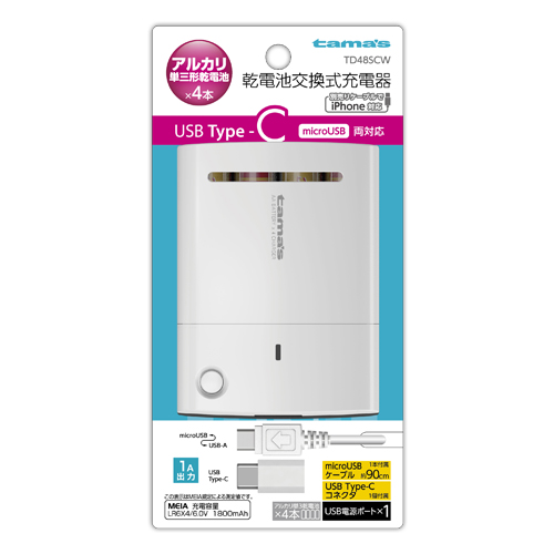 USB Type-C対応 電池4本交換式チャージャー ホワイト