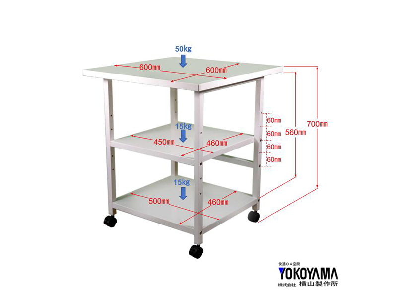 総耐荷重80kgの頑丈なオールスチール製プリンターラック(国内生産品)。 フレームの溝に天板をはめ込みビス固定するだけで苦労する天板の取付がどなたでも簡単に行えます。 高さが700mmと一般的なデスクと同じ高さのでサイドデスクとしてもおすすめです。