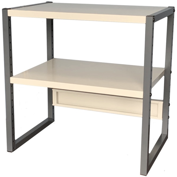 卓上でご使用いただけるW600の中棚付きプリンター台です、棚板が30mmピッチで可動できますのでプリンターに限らずいろいろなご使用方法に対応可能です。サイドフレームの色がブラックとなります