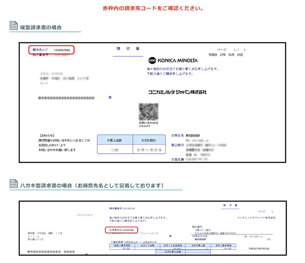 通常は、コニカミノルタよりお送りしております請求書に記載しております。
