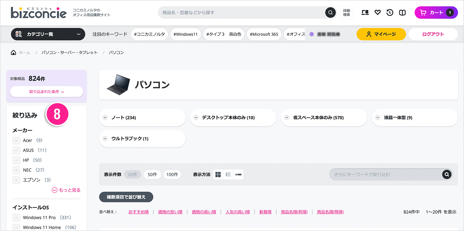 bizconcie®(ビズコンシェ)はコニカミノルタジャパン株式会社が運営する法人様向けECサイトです。